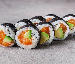 Fresh salmon, avocado, sushi rice, nori