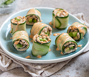 Tuna, cucumber, sushi rice, nori
